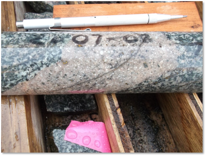 Porphyry intrusion and mineralization in DDH-2007-2 @ 77m